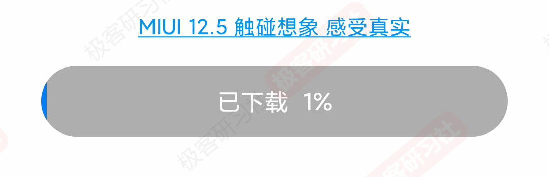 然后我们打开设置,再点击“MIUI 版本”,停留在当前系统完整包下载界面,等待下载进度条到 100%。