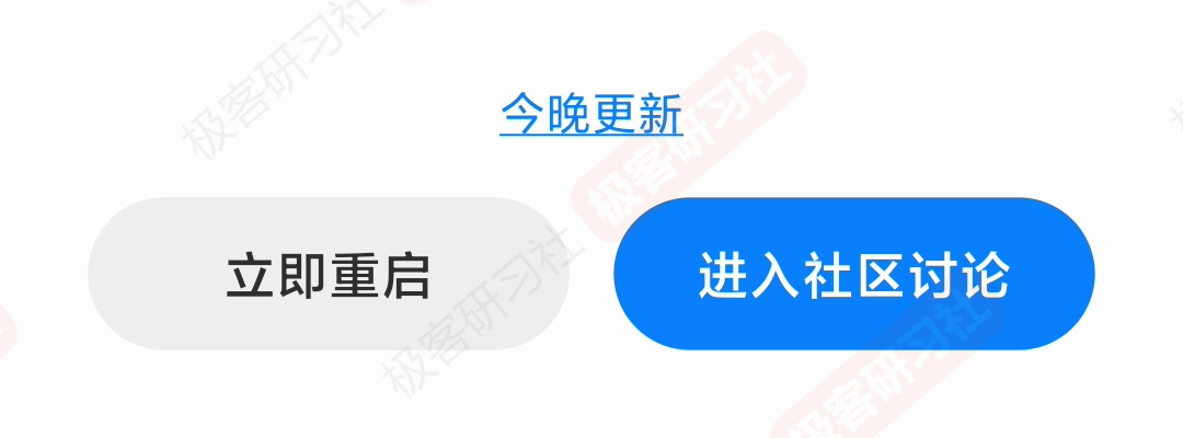 替换完成以后,底部进度条会变为已更新进度条,在已更新进度条和校验都到达 100% 后,会提示我们重启手机,我们重启手机检查一下是否“偷渡”成功。