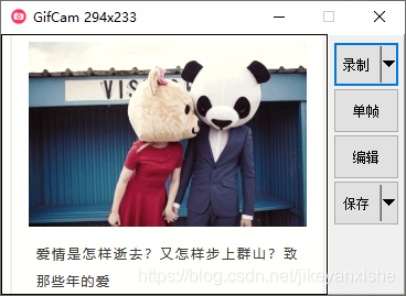 软件使用非常简单,我们打开软件以后,它的框是透明的,可以直接看到你要录制的视频的画面,我们只需要把软件移动到需要录制的视频的上面,然后调整好尺寸,点击录制按钮即可录制视频,录制的帧数越多则生成的GIF动图的体积则越大,我们可以通过编辑删除掉一些帧来减小体积。