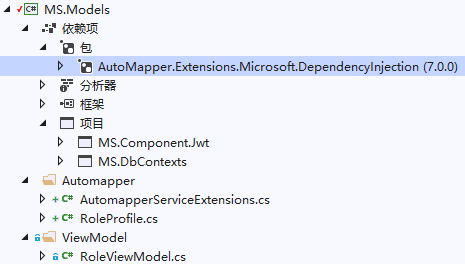 在MS.Models类库中新建Automapper文件夹,在该文件夹下新建RoleProfile.cs类: