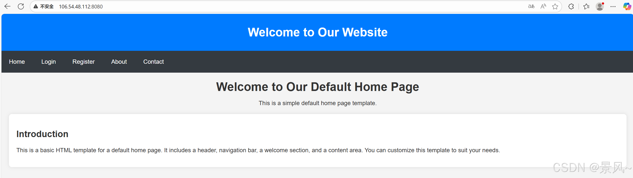 <p>This is a basic HTML template for a default home page. It includes a header, navigation bar, a welcome section, and a content area. You can customize this template to suit your needs.</p>