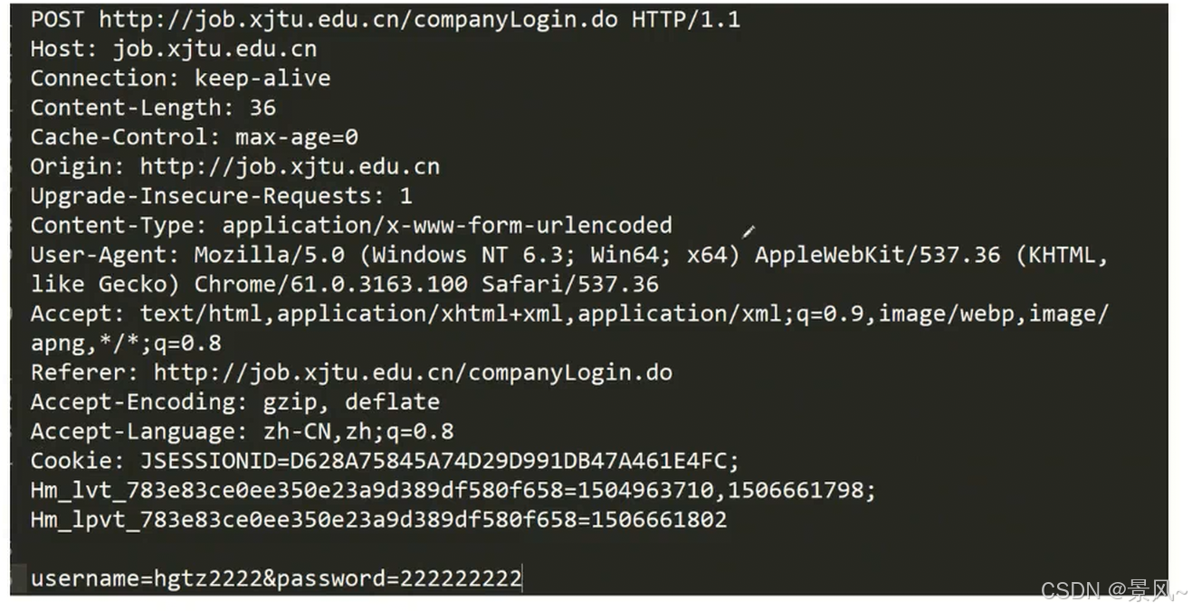 其中,前面三部分是一般是HTTP协议自带的,是由HTTP协议自行设置的,而请求正文一般是用户的相关信息或数据,如果用户在请求时没有信息要上传给服务器,此时请求正文就为空字符串。
