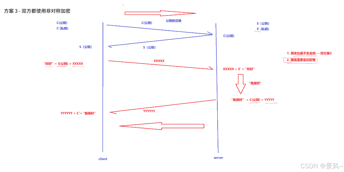但是如果直接把密钥明文传输,那么黑客也就能获得密钥了~