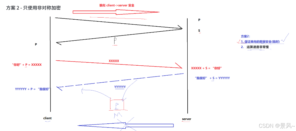 - 客户端向服务器发起请求,服务器明文传送公钥P给客户端