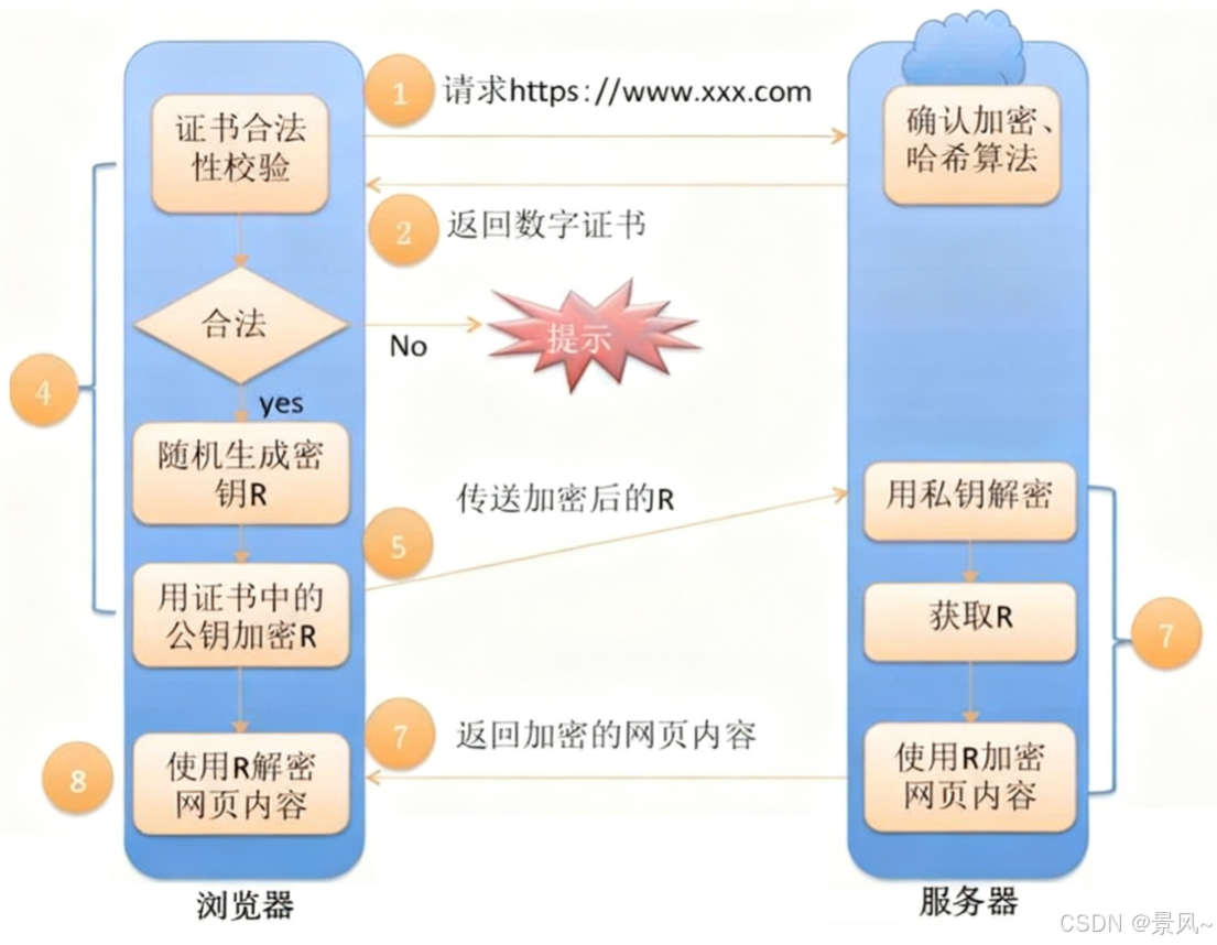 但是服务器到浏览器的这条路怎么保障安全? 如果服务器用它的私钥加密数据传给浏览器,那么浏览器用公钥可以解密它,而这个公钥是一开始通过明文传输给浏览器的,若这个公钥被中间人劫持到了,那他也能用 该公钥解密服务器传来的信息了。