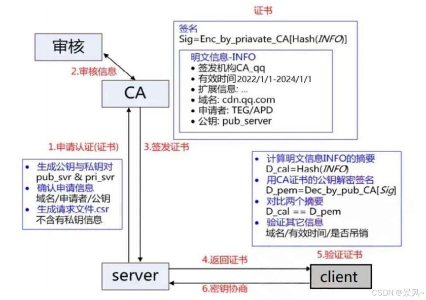需要注意的是:申请证书的时候,需要在特定平台生成查,会同时生成一对密钥,即公钥和私钥。这对 密钥对 就是用来在网络通信中进行明文加密以及数字签名的。 其中公钥会随着CSR文件,一起发给CA进行权威认证,私钥服务端自己保留,用来后续进行通信(其实主要就是用来交换对称秘钥)