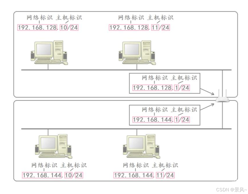 - 主机号:同一网段内,主机之间具有相同的网络号,但是必须有不同的主机号;