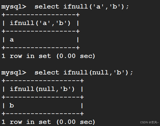 ifnull函数接受两个参数,如果第一个参数不为null则返回第一个参数值,否则返回第二个参数值。如下: