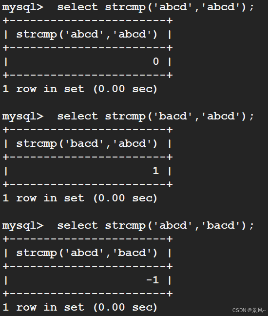 strcmp函数用于逐字符按照ASCII码比较两个字符串的大小,两个字符串大小相等返回0,前者大返回1,后者大返回-1。如下: