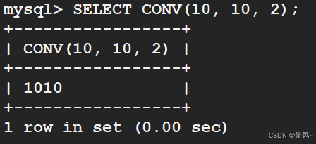 | conv(number, from_base, to_base) | 将数字从 from_base 进制转换为 to_base 进制 |