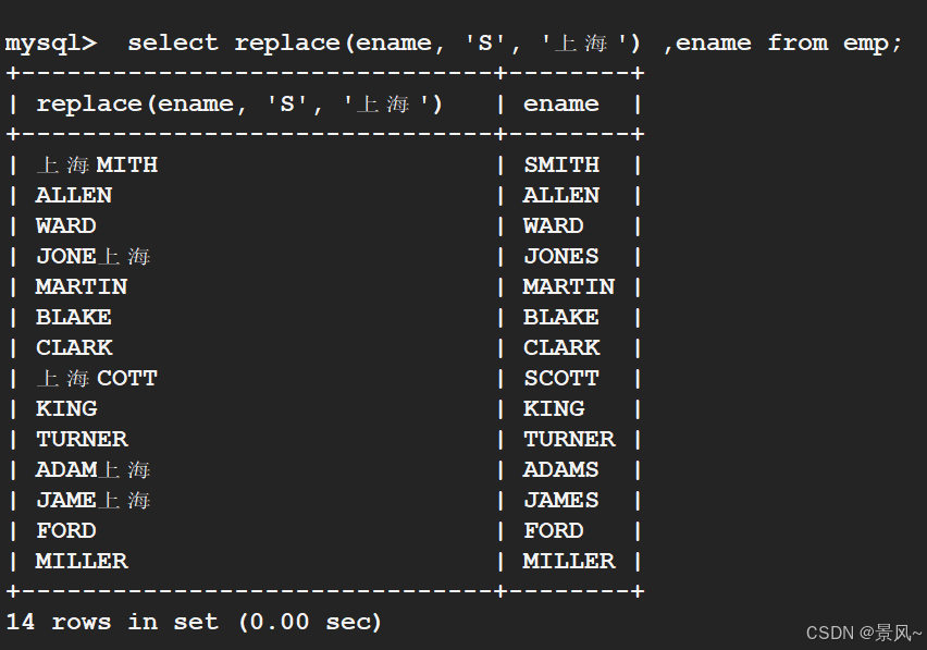replace函数用于将字符串中的指定子字符串替换成另一个字符串,例如将员工表中所有名字中的“S”替换成“上海”。如下: