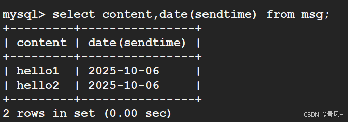 | now() | 获取当前日期时间(等价于 current_timestamp()) |