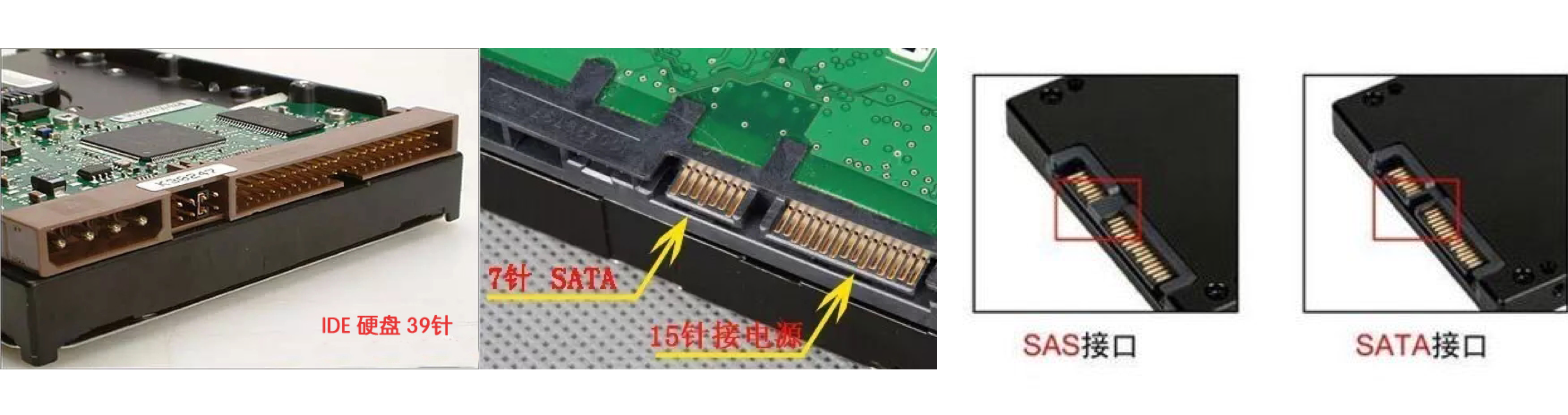 常见的硬盘接口有:IDE 、SATA、SAS、USB、SCSI,其中 SATA 是目前的主流接口,IDE 则几乎不再使用。