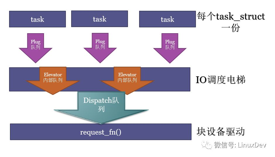 当各个进程本地的plug list里面的request被泄洪,以排山倒海之势进入的,不是最终的设备驱动(不会直接被拍死在沙滩上的),而是一个电梯排队算法,进行再一次的排队。这个电梯调度,其实目的3个:
