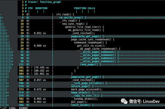 笔者也是通过ftrace的结果,用vim打开,逐句分析的。关于ftrace使用的详细方法,可以阅读《宋宝华:关于Ftrace的一个完整案例》。