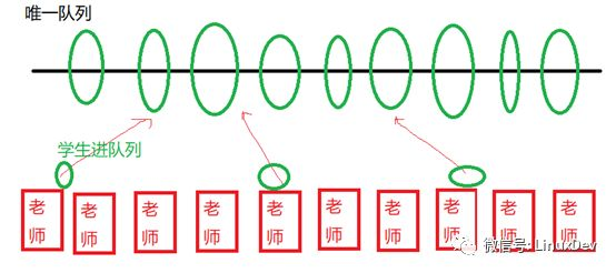 这个类似你现在有10个老师,这10个老师开学的时候都接受学生报名。然后有一个大的学生队列,如果每个老师有一个学生报名的时候,都访问这个唯一的学生队列,那么这个队列的操作会变成一个重要的锁瓶颈:
