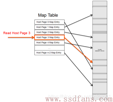 SSD内部维护了一张映射表(Map Table),HOST每写入一个Host Page,就会产生一个新的映射关系,这个映射关系会加入(第一次写)或者更改(覆盖写)Map Table;当读取某个Host Page时, SSD首先查找Map Table中该Host Page对应的Physical Page,然后再访问Flash读取相应的Host数据。