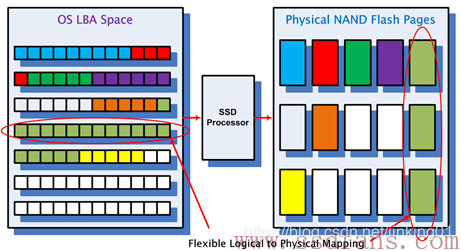 HOST是通过LBA(Logical Block Address,逻辑地址块)访问SSD的,每个LBA代表着一个Sector(一般为512B大小),操作系统一般以4K为单位访问SSD,我们把HOST访问SSD的基本单元叫用户页(Host Page)。而在SSD内部,SSD主控与FLASH之间是FLASH Page为基本单元访问FLASH的,我们称FLASH Page为物理页(Physical Page)。HOST每写入一个Host Page, SSD主控会找一个Physical Page把Host数据写入,SSD内部同时记录了这样一条映射(Map)。有了这样一个映射关系后,下次HOST需要读某个Host Page 时,SSD就知道从FLASH的哪个位置把数据读取上来。