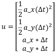 如果换成加速或减速运动模型,就可以引入加速度a_x和a_y,根据s1 = s0 + vt + at^2/2这里的u会变成: