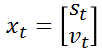 我们用向量xt来表示当前小车的状态,该向量也是最终的输出结果,被称作状态向量(state vector):