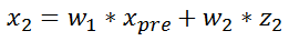 很显然,这两个结果都在真值附近。为了得到尽可能接近真值的结果,我们将这两个区域的结果进行加权,取加权后的值作为第二秒的状态向量。