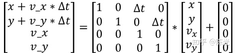对于匀速运动模型,根据中学物理课本中的公式s1 = s0 + vt,经过时间△t后的预测状态向量应该是
