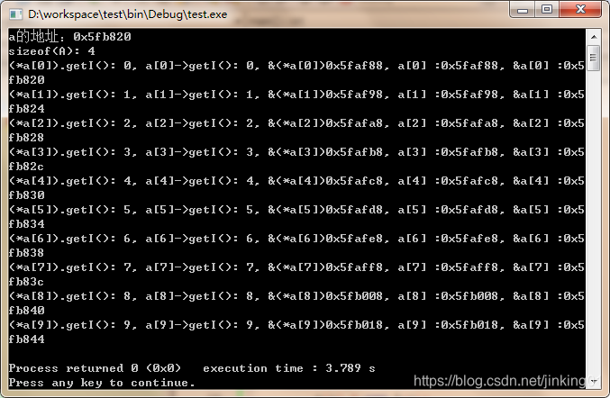 cout<<", &(*a["<<i<<"])"<<&(*a[i]);//A的对象所在的内存地址