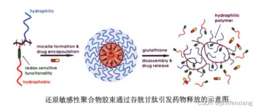 这些亲疏水链段构成嵌段共聚物所制备的聚合物胶束或囊泡具备更长的体内循环时间,并且可以避免被网状内皮系统的吞噬。为了提高药物递送的靶向性,可以在PEG链段上接上抗体、半乳糖或叶酸基团。将两亲性三嵌段共聚物聚己内酯-ss-聚乙二醇-ss-聚己内酯(PCL-ss-PEG-ss-PCL,PCEP)具有良好生物可降解性和生物相容性作为载体,叶酸为靶向配体,构建叶酸靶向还原敏感双载化疗药物与光敏剂的聚合物纳米胶束。