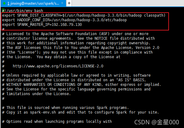 export SPARK_DIST_CLASSPATH=$(/usr/hadoop/hadoop-3.3.0/bin/hadoop classpath)