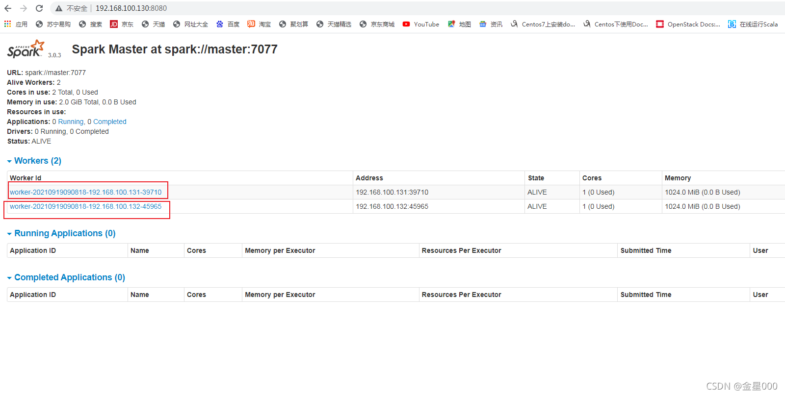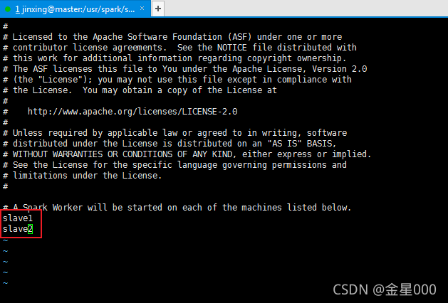 2.在slaves文件中增加worker节点 slave1 ,slave2