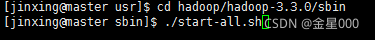 启动前可以执行以下jps指令,查看当前hadoop是否已启动