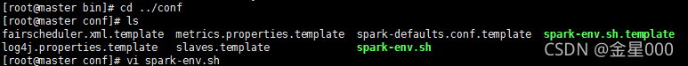 Spark根目录下的conf 里存放的配置文件,比较重要的,而且需要自行修改的是spark-env.sh.template,slaves.template ,尽量不要在原始模板上直接进行修改,最好是copy出一份来,去掉template后缀,这样就是我们要的文件了。