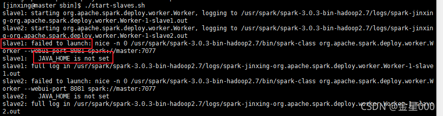 解决这个问题需要在/usr/spark/spark-3.0.3-bin-hadoop2.7/sbin/spark-config.sh最后添加export JAVA_HOME=/usr/java/jdk1.8.0_141