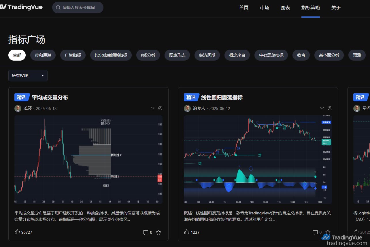 您可以在社区中搜索由 TradingVue 用户编写的已发布的脚本。