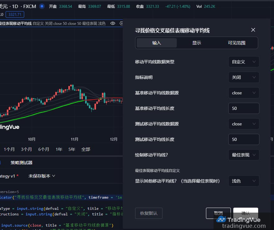 技术指标将大多数 TradingVue 内置功能分为四类:指标、策略、配置文件和形态。大多数功能均使用 Mine Script 编写,可免费使用。