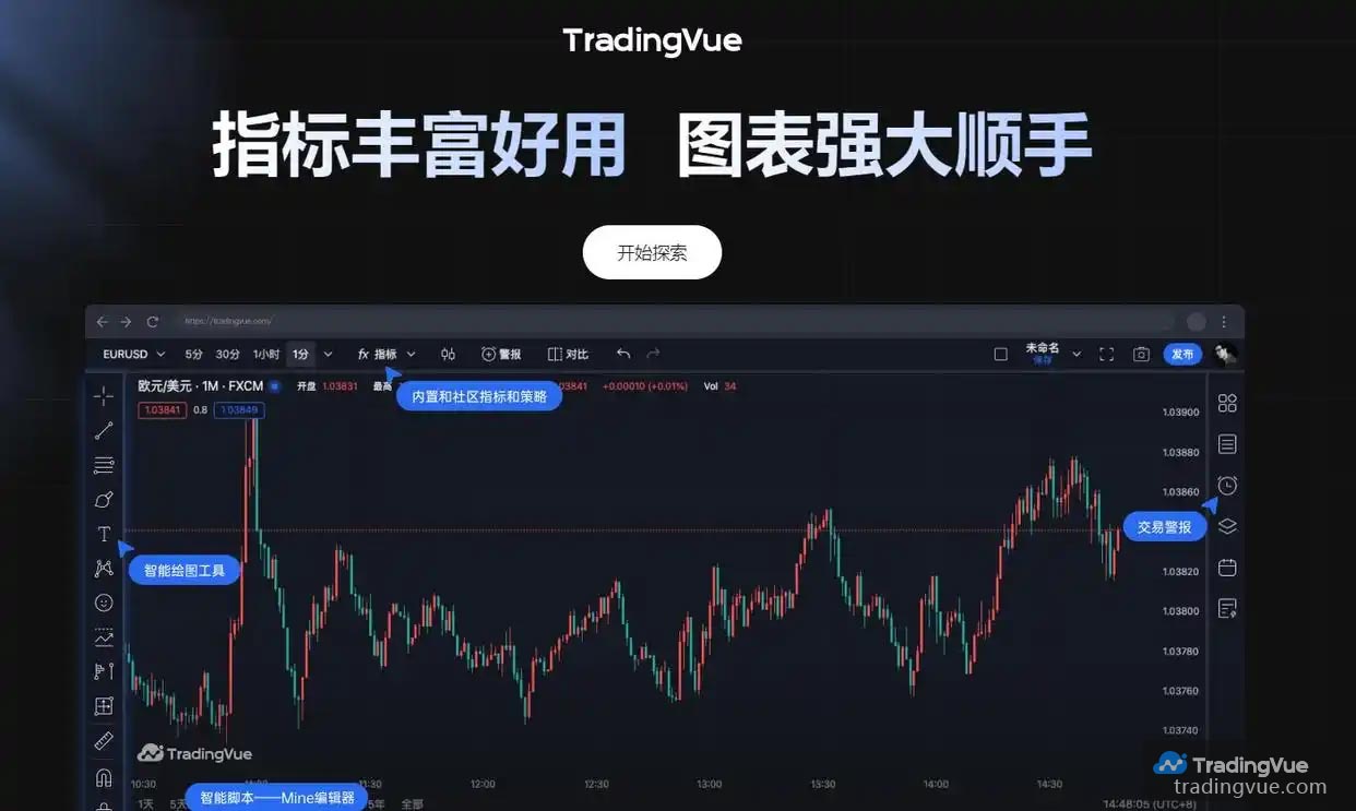 Tradingvue - 是一个专为新一代交易者和投资者设计的金融分析平台,旨在提供一个简洁直观的用户界面和强大的数据分析工具。该平台的设计思路注重简化复杂的市场数据分析过程,让用户能以更高效、更直观的方式进行市场监控和交易决策。
