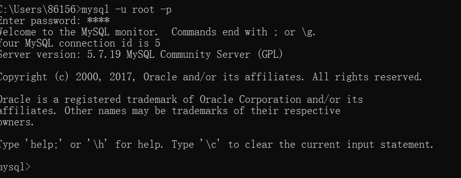 输入 mysql -u root -p然后输入你的密码,如果可以正常登录,则安装配置完毕!