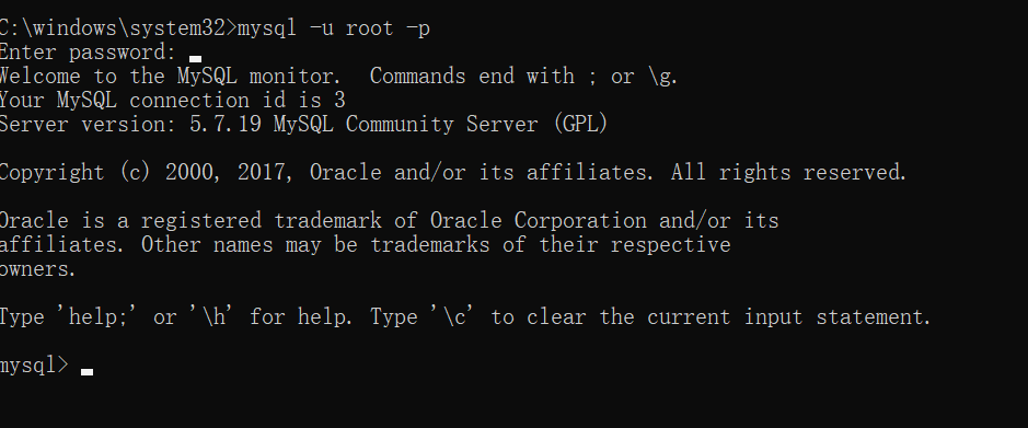 登录数据库,root密码为空,如果出下以下图片,则登陆成功.