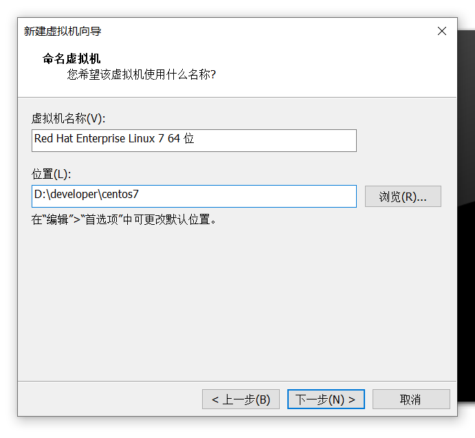 5)编辑你的虚拟机名称与安装的位置,然后点击下一步
