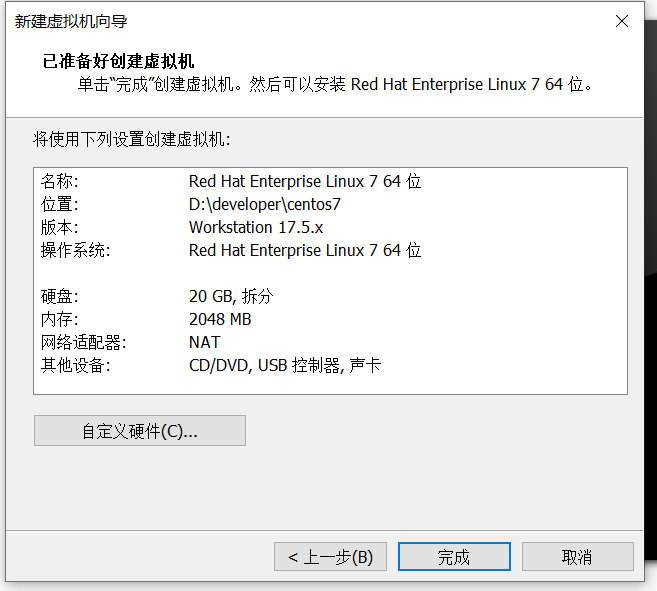 7)最后点击完成,最后会在你的虚拟机列表处显示你刚添加的虚拟机