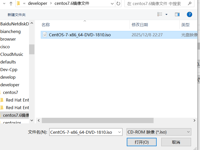 2)点击 CD/DVD选项,选择"使用IOS镜像文件"