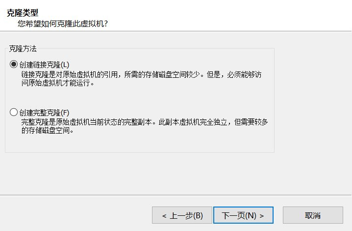 2.选择下一步,根据自己的需求选择"链接克隆"还是"完整克隆"
