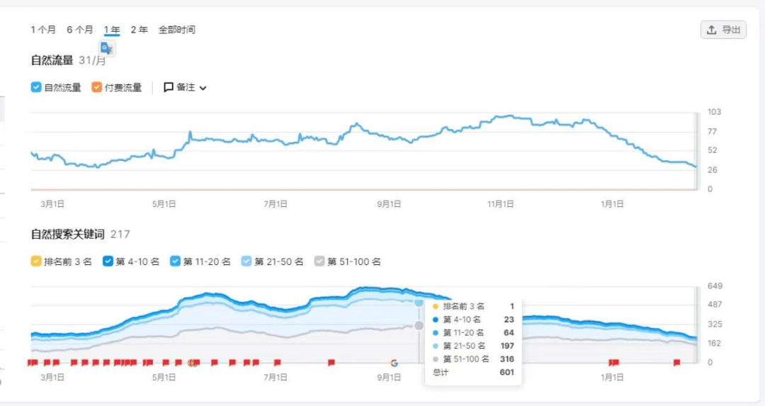 通过站内和站外优化,来提升网站的自然排名,排名越高,就能为网站引入越多的自然流量。此外,排名越靠前,客户的信任度也越高,因此排名的提升,实际上也有利于提升询盘率。