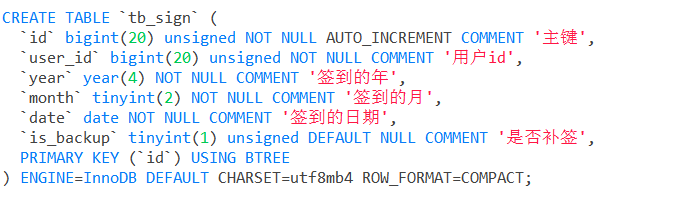 每签到一次需要使用(8 + 8 + 1 + 1 + 3 + 1)共22 字节的内存,一个月则最多需要600多字节