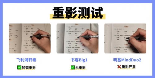 书客Big1表现完美,凭借其八重光学结构协同黑科技与全光域防眩光技术4.0,实现了从光源到桌面的全链路控光,以工程级光学重构整个光场,有效消除了重影现象。实测笔尖边缘锐利无重影,手部阴影淡且无扩散,书写体验流畅;飞利浦轩泰存在轻微重影,特定书写角度下会出现浅淡虚影,日常使用影响不大,但长时间专注书写可能有视觉负担;明基MindDuo2重影问题明显,笔尖有双影,手部投影虚影会轻微覆盖文字,需频繁调整手部位置才能看清,长期使用易加重视觉疲劳。