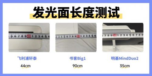 发光面长度直接决定照明范围——太短会导致“中心亮、边缘暗”,孩子为追光会频繁歪头、低头,长期容易养成不良坐姿。测试使用精密卷尺测量三款台灯的发光面长度,并在标准书桌上验证实际覆盖范围。