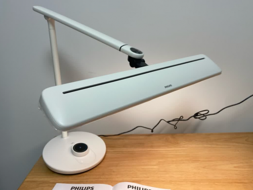 飞利浦是国际照明领域老牌企业,产品主打基础实用性与操作便捷性。轩泰款外观简洁,能融入多种家居场景,内部嵌入113片楔形偏光透镜,光线分布较均匀;采用旋钮式控制,集成开关、亮度调节与模式切换功能,避免触控误触,灯臂支持双转轴调节,适配不同桌面高度。但作为基础款,其核心护眼性能有限,且有消费者反馈灯头长时间使用后可能出现轻微下垂,关节耐久性有待提升。
