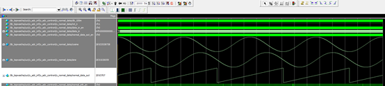 在CORDIC核输出的相位信号发声突变是在-3.14到+3.14处,因此我们只要根据突变前后数据的符号和大小即可通过加上或者减去6.28来实现解卷绕的过程。利用FPGA进行解卷绕时至少需要两个点,通过判断这两个点的符号和差值的绝对值是否等于6.28来进行确定相位突变的点和方向。在实际代码仿真可知通过两个点判断这种方式是可行的,仿真波形如下图所示:
