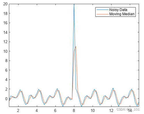 使用移动均值和大小为 3 的窗口对含噪数据进行平滑处理。