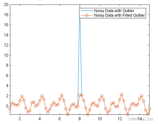 legend("Noisy Data with Outlier","Noisy Data with Filled Outlier")